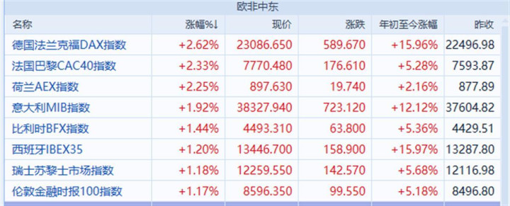 欧洲部分市场股市2日收盘情况
